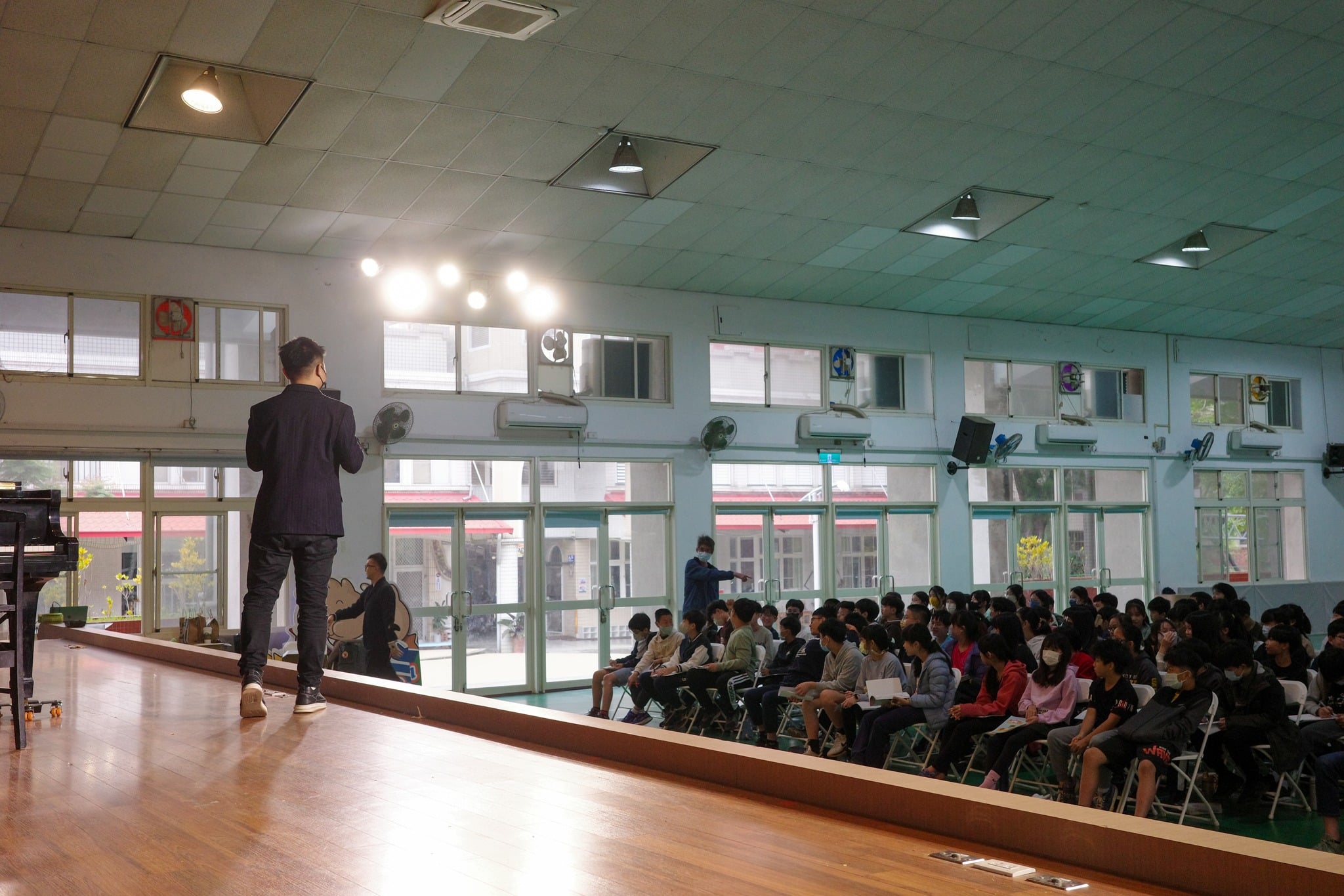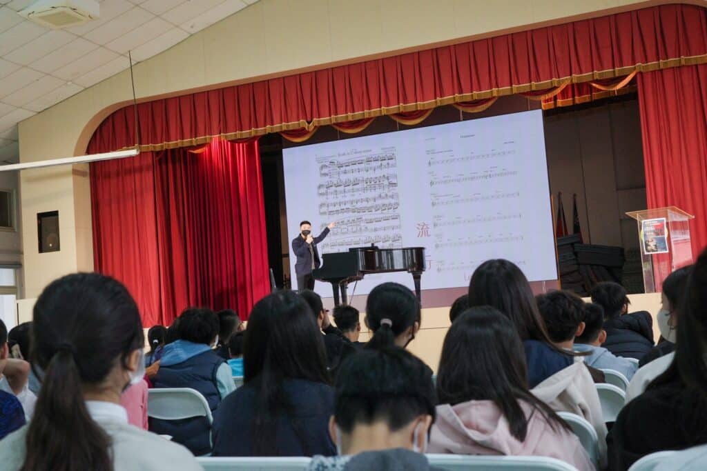 在實際操作環節中,張育瑞將音樂創作拆解為不同階段,帶領學生理解旋律、動機與延伸之間的關係,讓孩子明白即使是簡單的素材,也能透過想像力與嘗試,發展成完整的作品。多位學生於現場分享自己的創作想法,張育瑞則以鋼琴即興回應,將孩子的構想轉化為具體聲響,使音樂成為一種即時且直觀的交流語言。