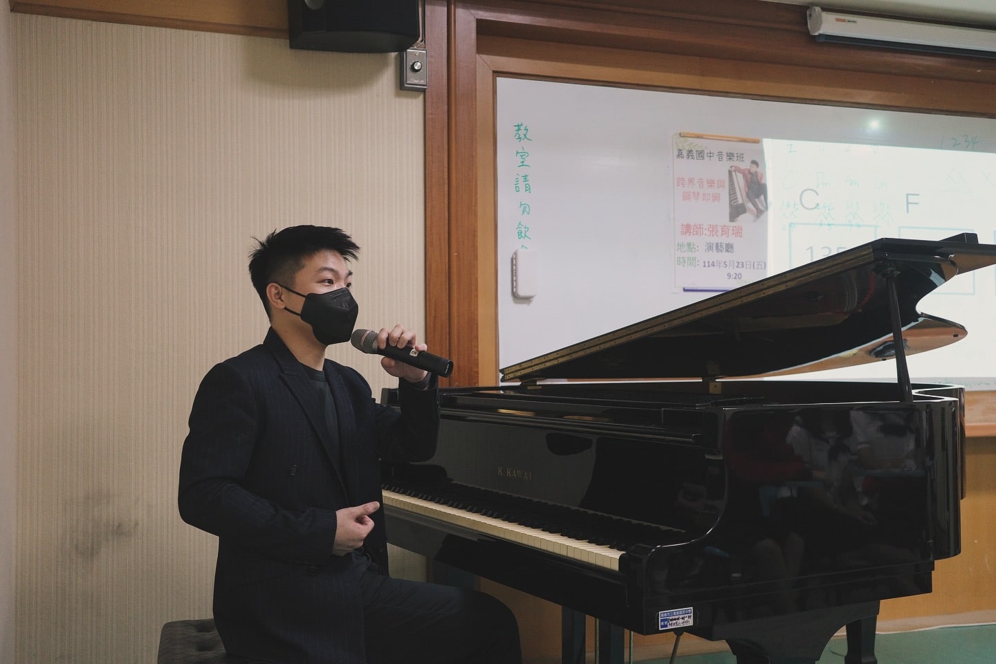 跨界鋼琴家張育瑞(Rick Chang)近日受嘉義國中音樂班邀請,前往校園舉辦專題音樂講座。此次講座共規劃三堂課程,涵蓋音樂經歷分享及即興創作示範,內容精彩多元,旨在啟發學生對音樂的熱情與創意表達能力。